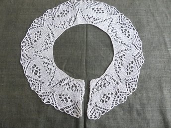 Vit stickad krage i spetsmönster.