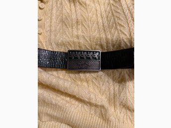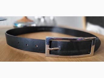 ## Vackert svart läderbälte/skärp längd 85 cm från Saddler ##
