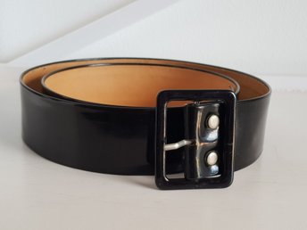 Retro vintage, svart lack skärp/bälte i skinn.