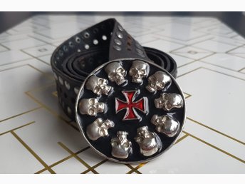 Rött, svart, silver bältesspänne