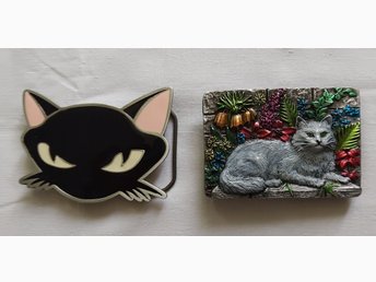 Två Bältesspännen med Kattmotiv
