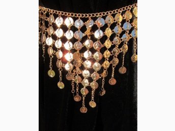 Guldfärgad bälte i metall. Boho/Hippie/Folklore. Totallängd: 108 cm. NY