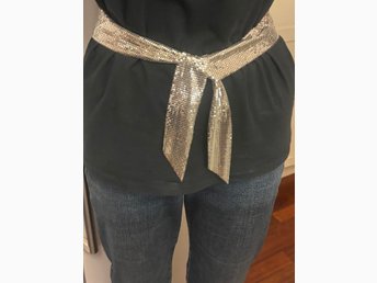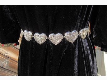 Silverfärgad bälte i metall. Boho/Hippie/Folklore. Totallängd: 106 cm. NY