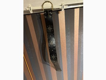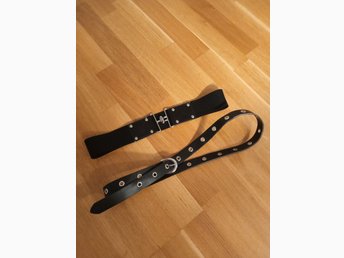 Svart bälte 82cm långt. 6cm bred.