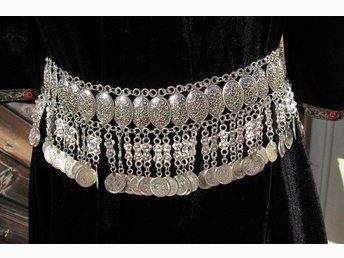 Silverfärgad bälte i metall. Boho/Hippie/Folklore. Totallängd: 121 cm. NY