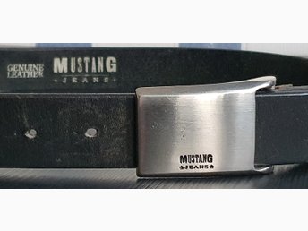Mustang svart ?läder bälte, storlek 90