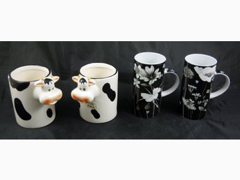 4st Muggar, två muggar med ko motiv och två muggar med blommor . OANVÄNDA