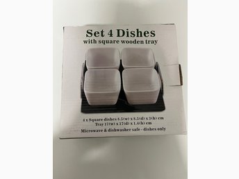 Set med 4 skålar med träbricka