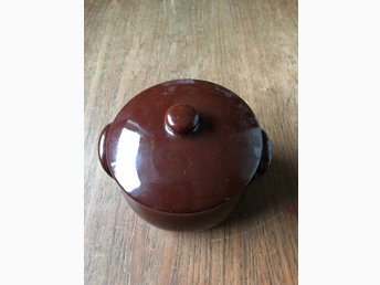 Brun keramikgryta med lock / karott/ skål