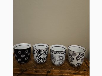 Muggar med svartvita mönster, 4 stycken