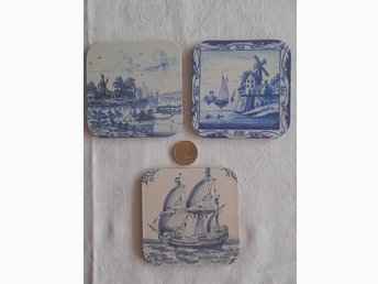 Glasunderlägg med blå motiv,