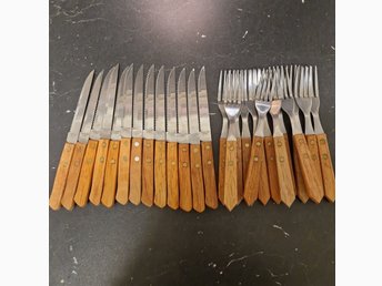 Bestickset i rostfritt stål med trähandtag