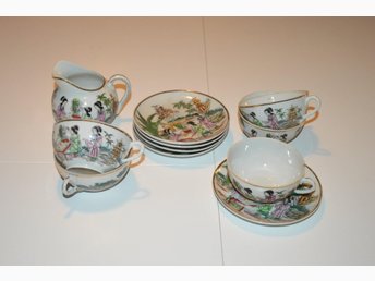 11 Delar Äldre Kaffekopp med Fat och Sockerskål
