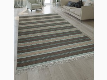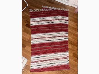 Hemvävd matta i randigt