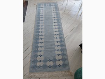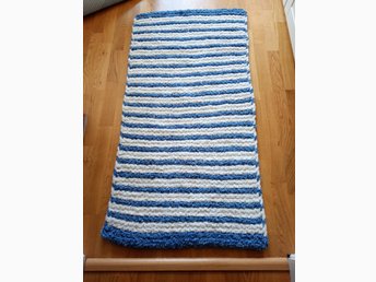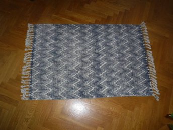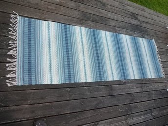 Handvirkad matta i blått och vitt