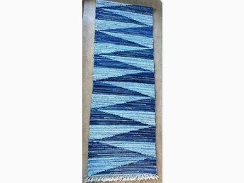 Handvirkad Matta i Blått och Vitt