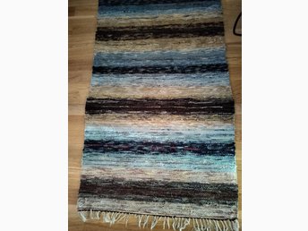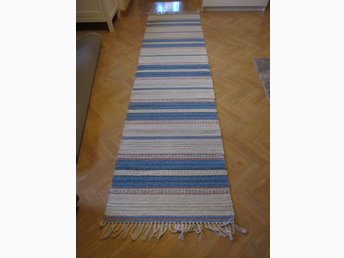 Kraftig Hemvävd Trasmatta 250x72 cm Bruna o blå färger