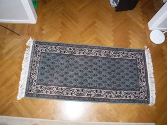 Blå liten matta av ull 60 x 132 cm