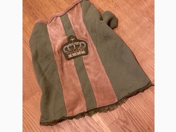 Grön hund tröja med en Swarovski krona, fleece, sammet.