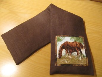 ny VETEKUDDE / VETEVÄRMARE / VÄRMEKUDDE i linnetyg Häst med fölunge