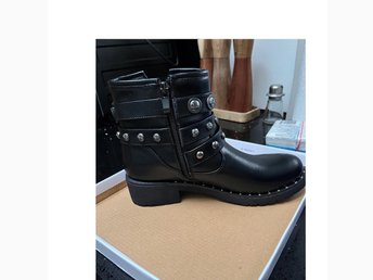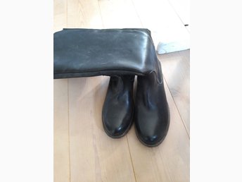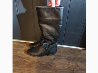 Elegant svart damstövel i skinn med dekorativt spänne i stl.37