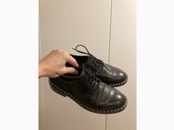 Snörskor derby med nitar, läder, oxfordskor, brogue, Svart, 36,