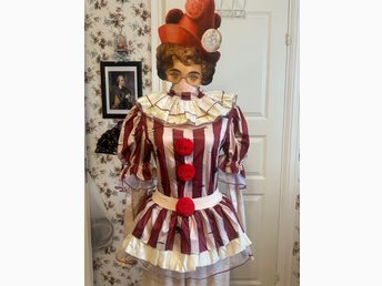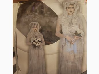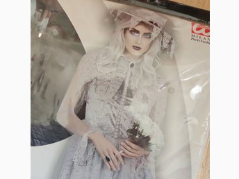 Spöke. Vacker grå/vit klänning och hatt, storlek S