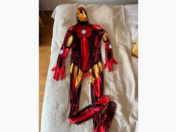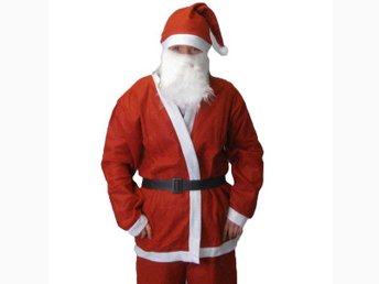 Tomtedräkt med luva, bälte och skägg. Vuxen One Size