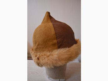 Mössa Medeltid äkta päls Skinn Viking läder Medeltida Maskerad