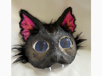 Handgjord katt-/fladdermus-mask för cosplay, therian, anime, maskerad