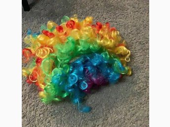 Multifärgad peruk regnbågsfärgad flerfärgad färgglad krulligt kort hår lockat