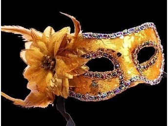 Ögonmask Venice Venedig maskerad mask utklädningskläder GULD BLOMMA FJÄDER **