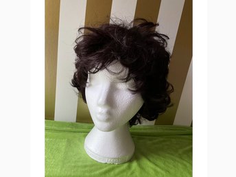 NY! Tutt korthårig lockig mörk peruk, inkl perukstock, maskerad, Halloween