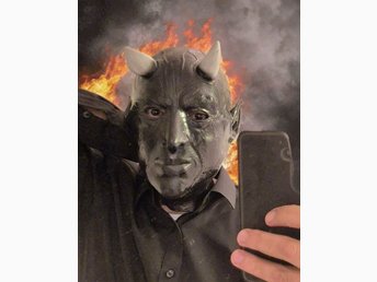 Halloween Djävulsmask – Svart Latexmask med Horn