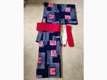 ÄKTA JAPANSK KIMONO YUKATA MED RÖD BÄLTE BOMULL INDIGO BLÅ