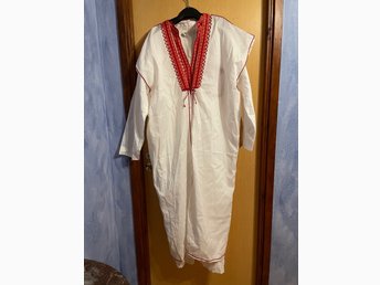 Ett 2-delat kaftan set i vitt med röda broderier L/XL