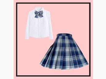Söt japansk design Skoluniform - Blåvit Rutig Kjolen,midjemått 72-76