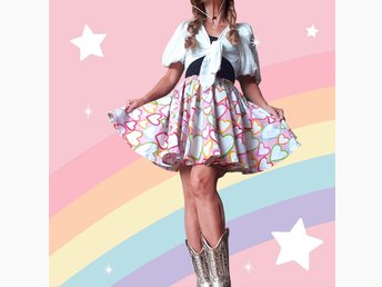 Vrolijk hartjes rokje swingrok skaterok recycled materiaal ca maat 32/34/36