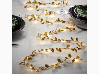 NY 2M LED-ljusslinga med guldfärgade blad, totalt 20 LEDs