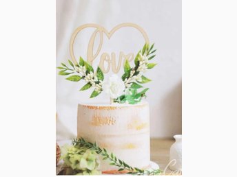 Ny! Bröllopstårta cake Topper - Hjärta med "Love" tårtdekoration grönska