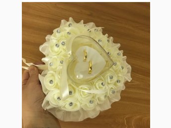 Handgjord Bröllopshjärta Blommor Ring Kudde