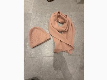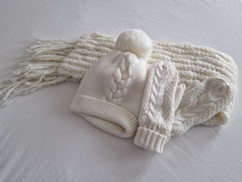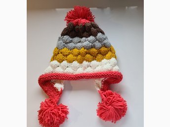 Jätteskön MÖSSA stickad med knytband korall vit gul grå till skidor på TOMTE *