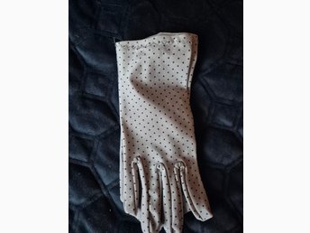 Stickade handskar i svart-vit färg med stjärnor motiv.