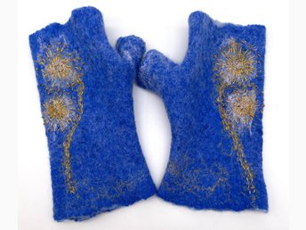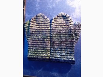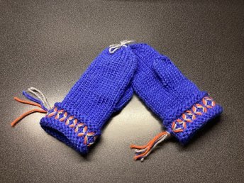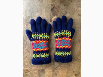 Vantar Fingervantar mönsterstickade med blått mjukt foder. Stl 5/6 Fint skick