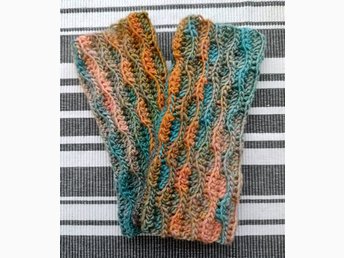 Rosa uggletorgvantar Handstickade i reflexgarn
