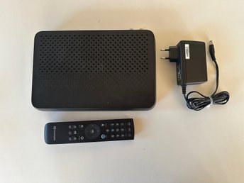 Arris TV-box med fjärrkontroll och strömadapter till Telenor