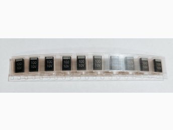 10 st. Tantalkondensator 100uF/10V Storlek 7,3X4,4mm. Samsung TCSCS1A107MDAR