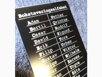Bokstaveringsalfabet Försvaret/Radio/Tele - Skylt i aluminium