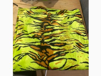 Häftigt syntettyg neongrönt tigerrandigt, ej stretch.