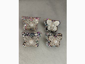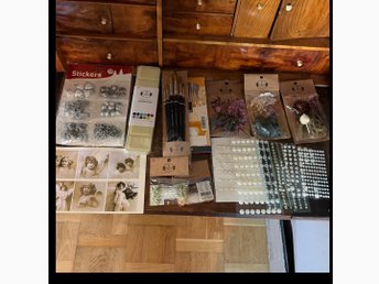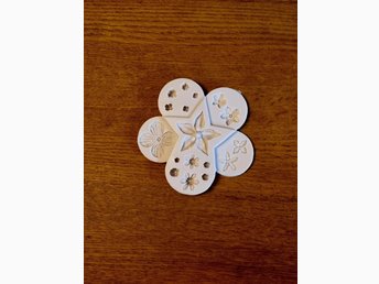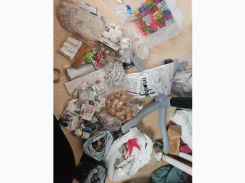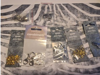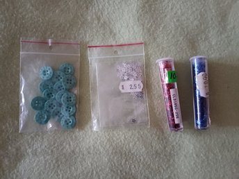 Nya. Silvriga dekorationsstjärnor + glitter rött + blått + plastknappar 15st.